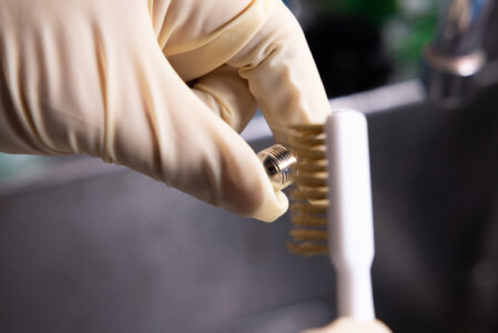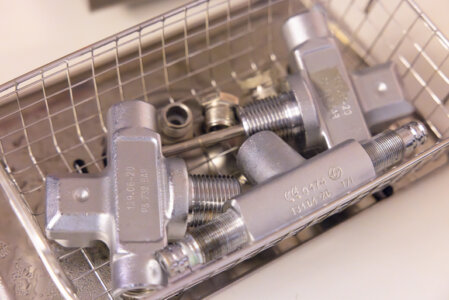 Mithilfe der zuvor bestellten Revisionssätzen, Ultraschallbädern und